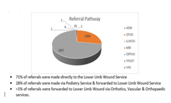 - Developed and implemented a single standard process for referral. A ‘one door’ approach for ABUHB patients with lower limb wounds was successfully launched .