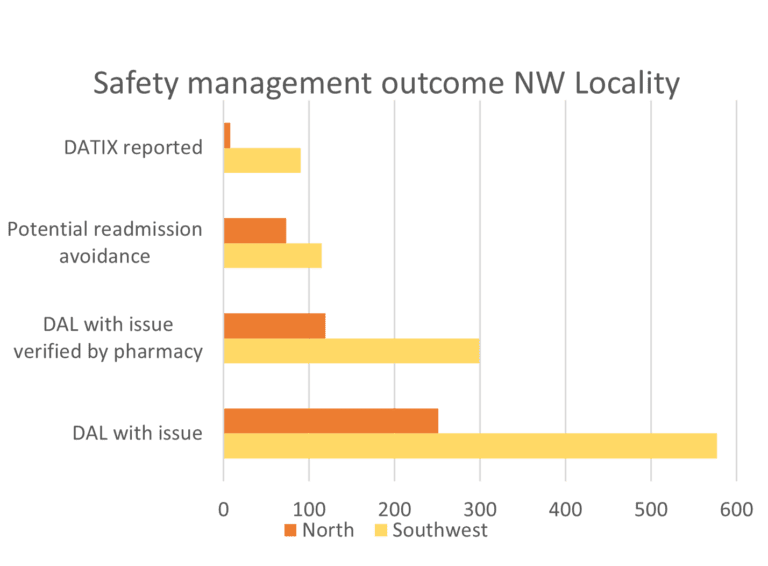 - Analysis of number and types of safety issue mitigated (98 DATIX reported)