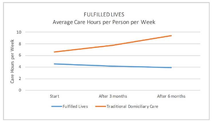 For the pilot group of people with dementia (compared to a cohort receiving traditional domiciliary care):